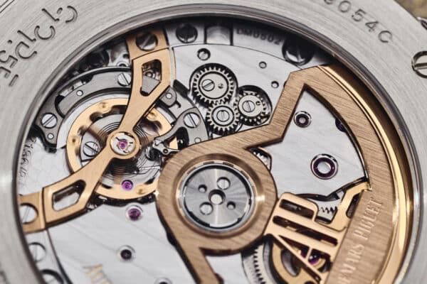 The finishing on the movement is exactly what you’d expect from AP – it’s complete with polished bezels, Côtes de Genève, and a 22ct gold rotor you can admire through the sapphire caseback.
