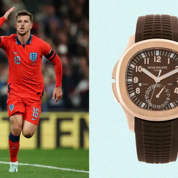 Man Utd’s key summer signing Mason Mount, who has made the £60 million move from Chelsea, wears a Patek Phillipe Aquanaut 5164R.