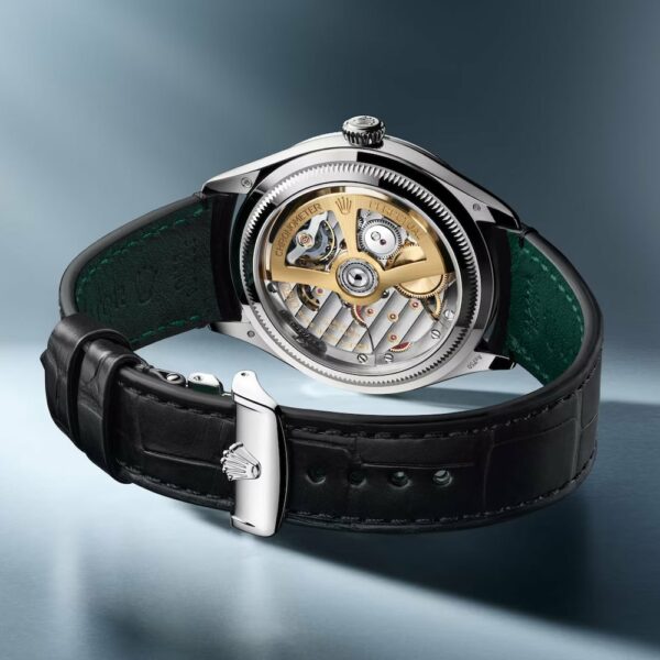 It uses Rolex’s Syloxi silicon hairspring which has only been used in smaller models before now. something that, until now, had been reserved for smaller models. It even offers Chronergy escapement and Paraflex shock-absorbing device and provides a power reserve of around 66 hours.