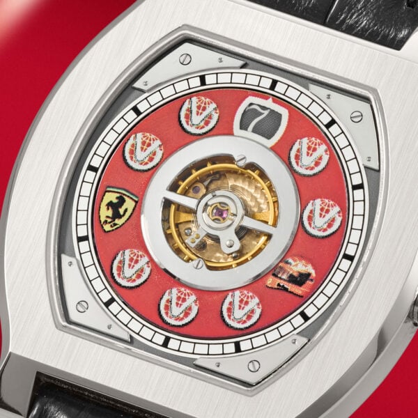 It boasts the horse logo at 9 o’clock and a Schumacher’s race helmet at 3 o’clock. And in tribute are seven FIA globes to represent world championship wins. This one should fetch up to £2.2 million.