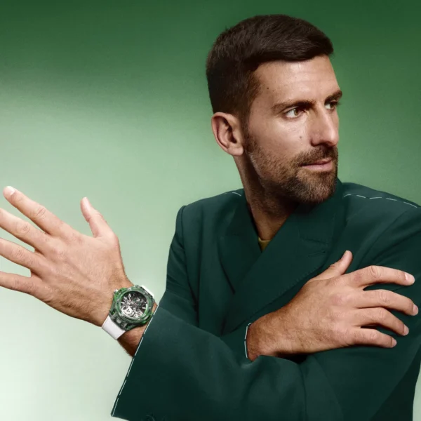 Novak Djokovic was spotted wearing the Big Bang Tourbillon Novak Djokovic GOAT Edition by Hublot, a timepiece that effortlessly blends technical ingenuity with tennis-inspired design.
