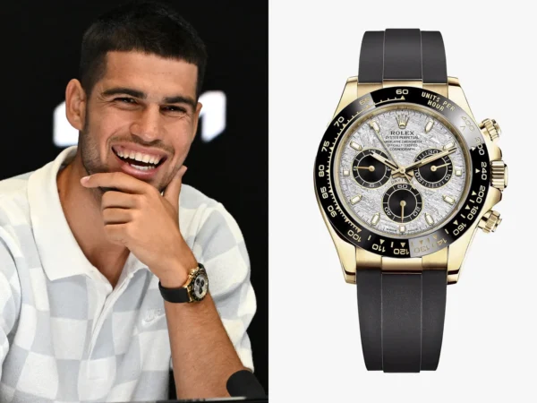 Powered by Rolex’s in‑house Calibre 4130 automatic movement with a 72‑hour power reserve, it’s become part of Alcaraz’s signature look during major victories and celebrations.
