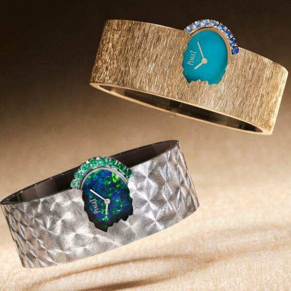 The new options include a rugged design with an oval dial with turquoise and diamonds; a golden bracelet with diamonds with an opal dial and a white gold offering with black opal dial and flashing green-blue lights with emeralds. Jazzy.