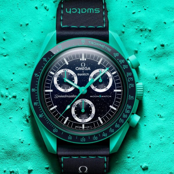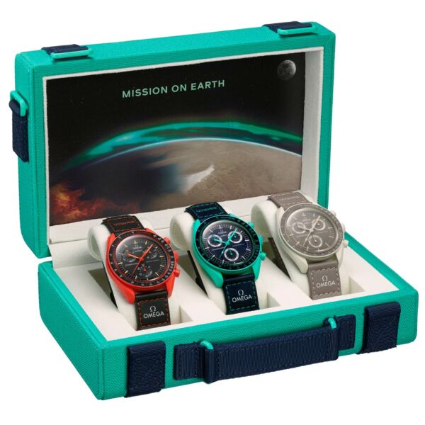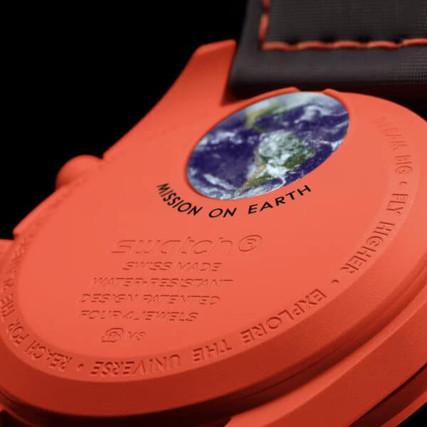 The MoonSwatch Mission on Earth editions have a design of planet Earth on the battery cover and Super-LumiNova applied to the hands and hour markers, meaning they are great for reading time in low-light conditions.