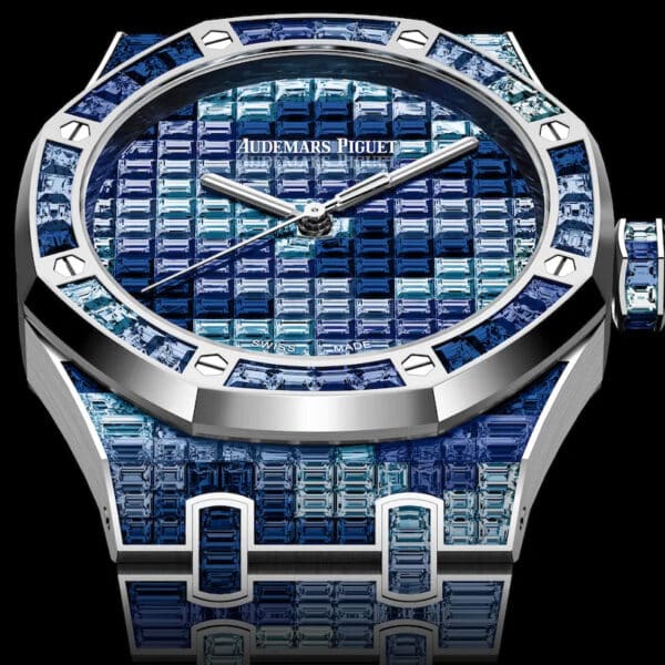 The new Royal Oak Selfwinding Full Gemset pieces are a little crazy in a camouflage style with two colour options: blue or army-style. The motif is created from no fewer than 861 baguette-cut gems.