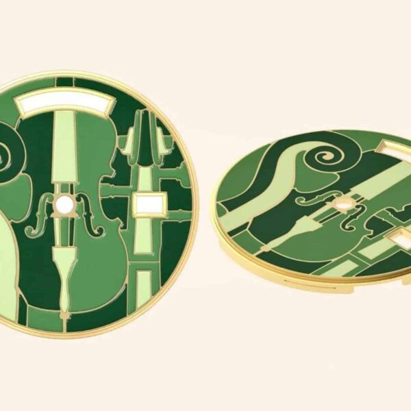 Paying tribute to the universal world of music, this yellow gold offering features hand-scored illustration of a violin, outlined in gold, along with side impressions of the neck, pegbox and eye of the scroll.