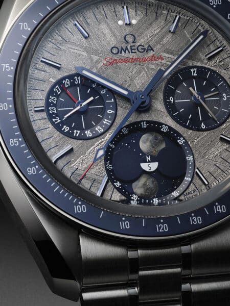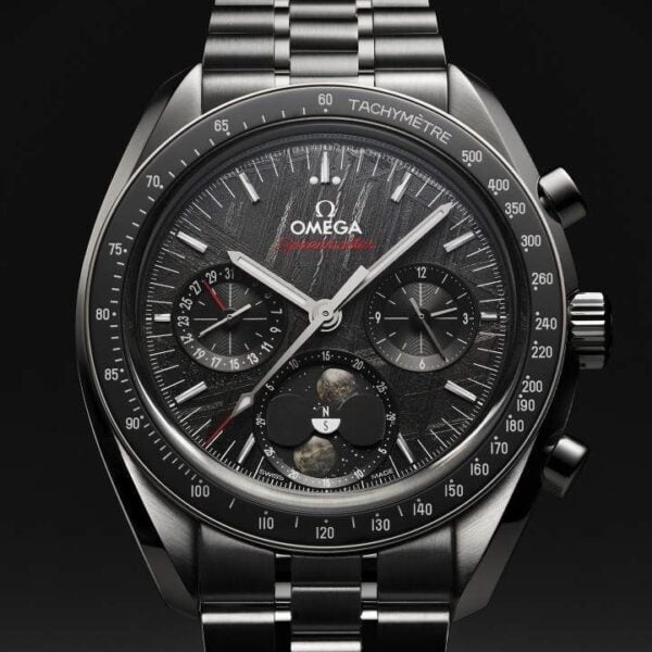 We love the Speedmaster Moonphase Meteorite – a stunning 43mm stainless steel watch that celebrates Omega’s connection to space. It comes in two versions, each with a unique dial made from genuine iron meteorite. You can choose from a sleek black PVD finish or a sophisticated galvanic grey.