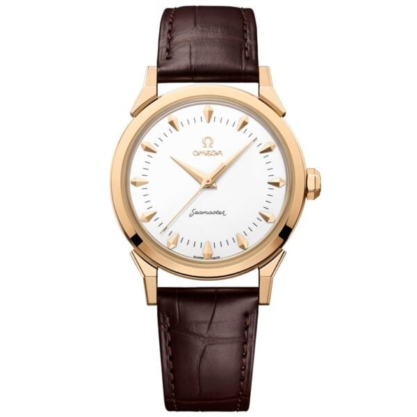 Its white Grand Feu enamel dial is accented with diamond-polished 18K Moonshine Gold hour markers and hands, while grey enamel adds a subtle contrast to the Seamaster logo and minute track.