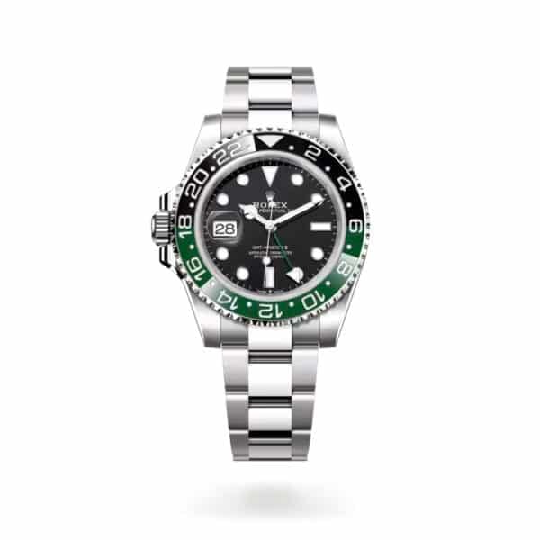 With a cerachrom bezel insert that combines green and black, the Rolex GMT-Master II Ref. 126720VTNR is officially the first left-handed Rolex ever made with a crown position at 9 instead of 3 o’clock.