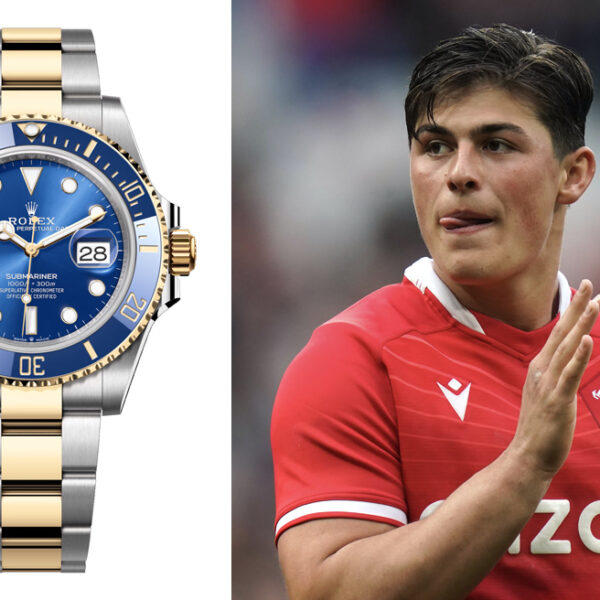 Former Wales winger Louis Rees-Zammit quit to play American football but was previously spotted in a Rolex Submariner royal blue dial and yellow gold at the Monaco Grand Prix last year.