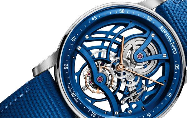 If bright blue is your jam, you’ll love the new Code 11.59 Tourbillon Openworked, with its jazzy ceramic case and 18k white gold bezel.