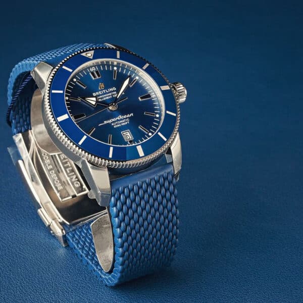Available in a variety of sizes and materials including stainless steel and 18k red gold, the Superocean Heritage B20 Automatic features other coloured dials too, either with a matching mesh bracelet, or a “mesh-styled” rubber strap fitted with a folding buckle. It’s powered by the Breitling Manufacture Caliber B20.