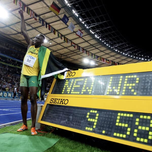 Holding an incredible 9.58 second world record for the 100 meters, the Jamaican set the record in 2009 at the World Championships in Berlin.