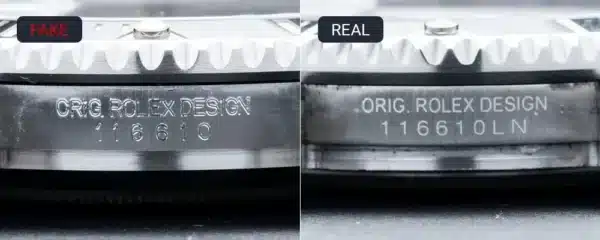 The rehaut of the watch – the inner rim between the dial and crystal – is a great way to spot a fake. Text on this should be laser-etched rather than engraved.