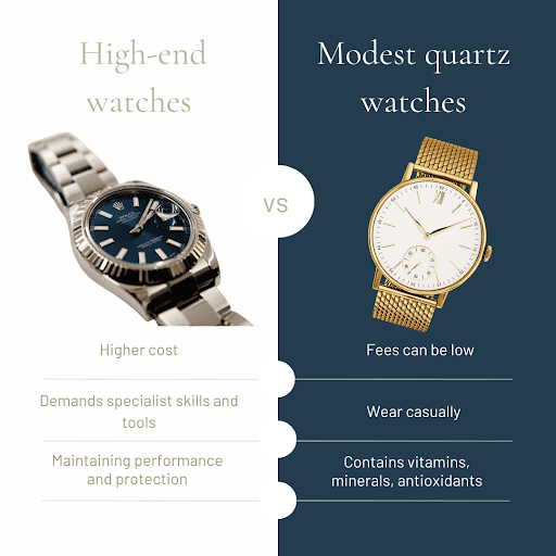 For modest quartz watches, the kind you wear casually, fees can be low. But, for water-resistant or high-end watches, maintaining performance and protection demands specialist skills and tools, which naturally affects cost.