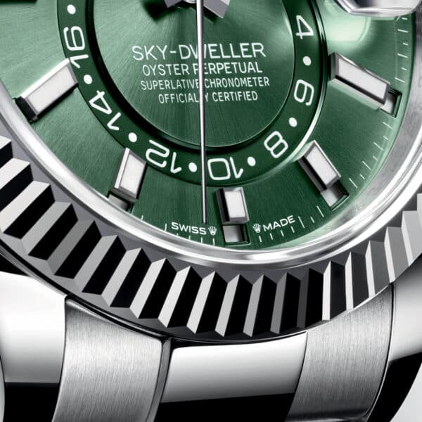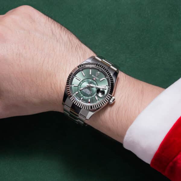 While Santa travels the world delivering gifts, he can easily track the time at home and the local time of the city he’s visiting with a Sky-Dweller.
